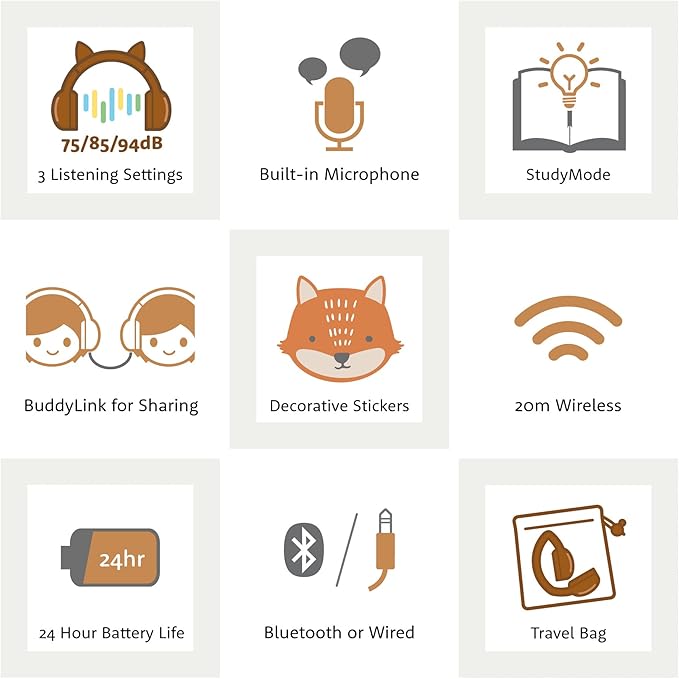 لذلك، تم تجهيز كل سماعة BuddyPhones بدائرة إلكترونية معتمدة تحد من مستوى الصوت، مما يضمن حماية سمع الأطفال.