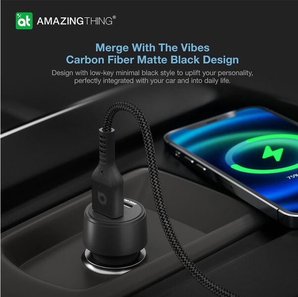 Designed to complement your car’s interior, this charger features a sleek carbon fiber matte black finish that delivers both style and performance. Its compact and minimal build seamlessly blends into any dashboard, offering fast, reliable charging while elevating your everyday driving experience. Perfect for those who value function without sacrificing aesthetics.