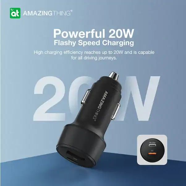 شاحن سيارة Amazing Thing Type-C PD 20W – أسود