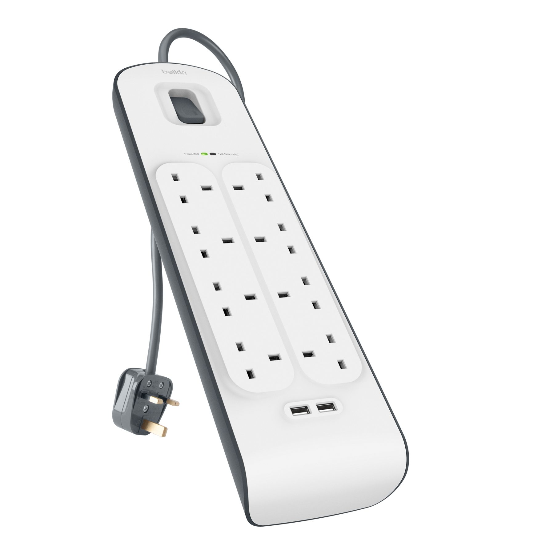 كابل طاقة ٨ منافذ – ٢ متر بشحن يو اس بي من بيلكين