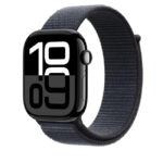 ساعة Apple Watch Series 10 بنظام GPS مقاس 46 مم بهيكل من الألومنيوم باللون الأسود اللامع مع سوار Ink Sport Loop
