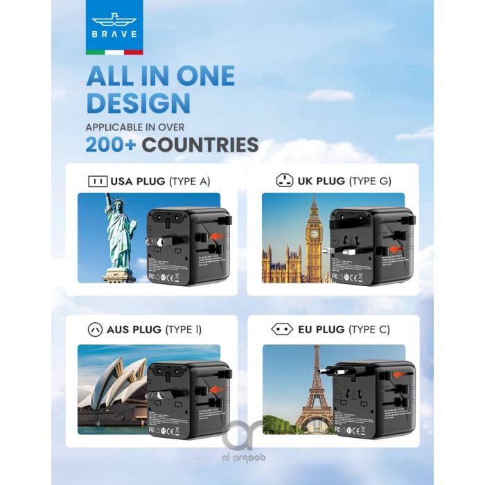 BRAVE 20W FAST TRAVEL CHARGER GAN 3 PORT + AC ADAPTER