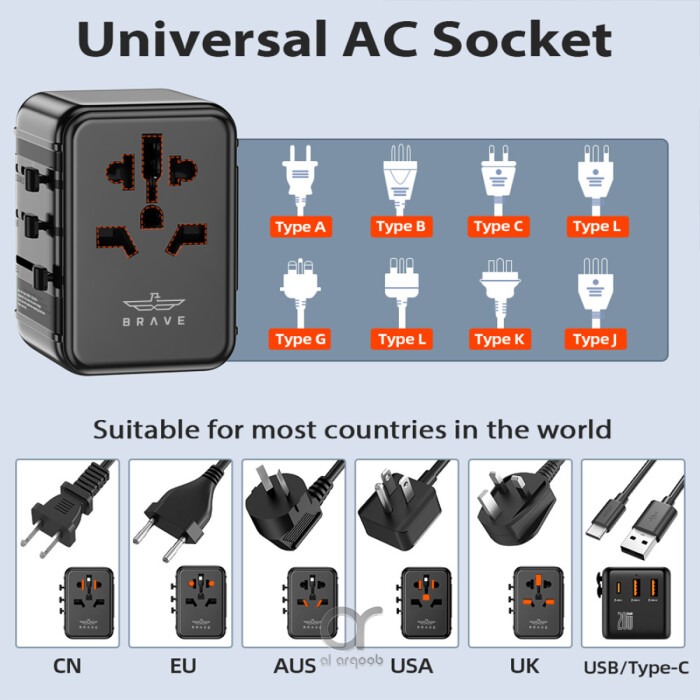 BRAVE 20W FAST TRAVEL CHARGER GAN 3 PORT + ACADAPTER