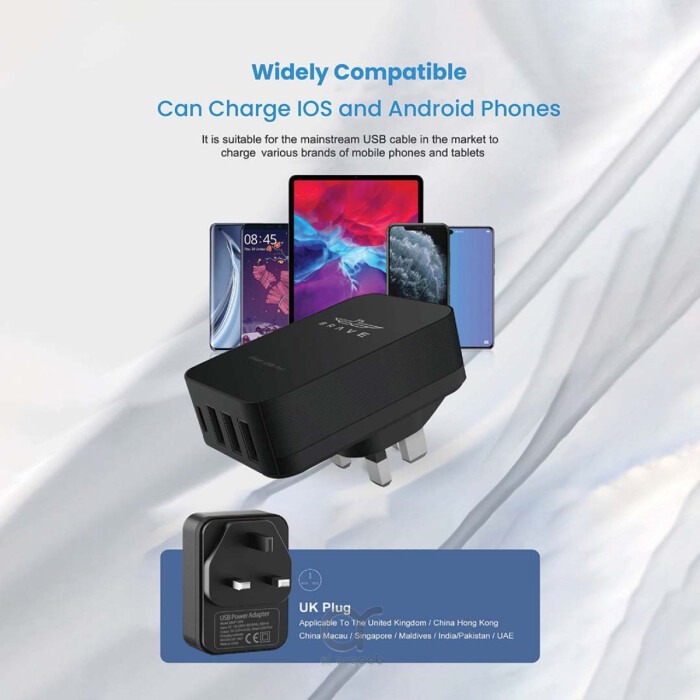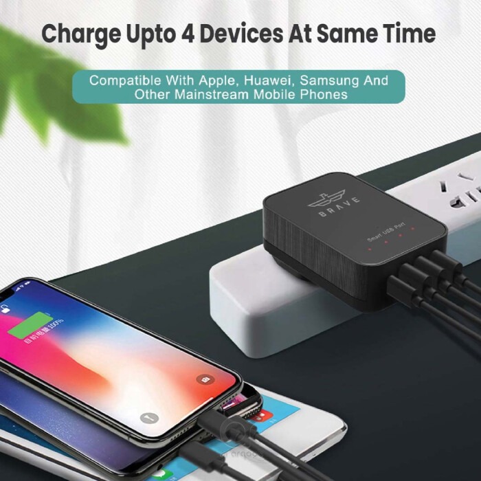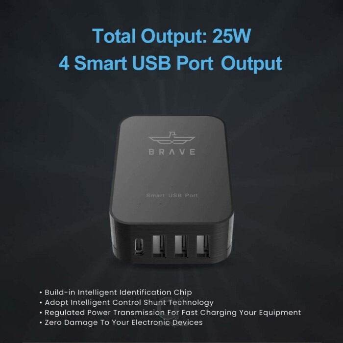 Brave 4 Port Smart Charger 25-Watt/5.0a Of Max Output Power To Charge All Your Devices Simultaneously.