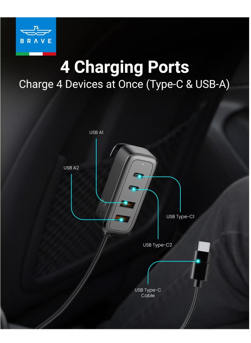 BRAVE 60W MULTI PORT CAR CHARGER EXTENSION – FOR TYPE-C CABLE PORT