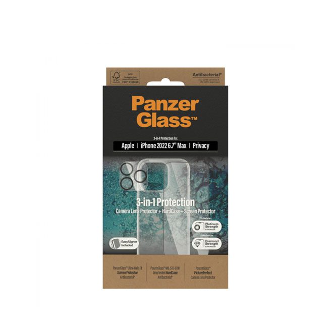 PanzerGlass PG BUND IPH2022 6.7&UWF scr prot HC PP. Screen protector type: Privacy screen protector, Brand compatibility: Apple, Compatibility: Apple – iPhone 14 Plus Protection features: Scratch resistant, Shock resistant, Anti-bacterial. Material: Tempered glass, Polyethylene terephthalate (PET), Product colour: Transparent. Quantity: 1 piece(s) PanzerGlass PG BUND IPH2022 6.7UWF scr prot HC PP, Transparent screen protector, Apple, Apple – iPhone 14 Plus, Scratch resistant, Shock resistant, Anti-bacterial, Transparent, 1 pc(s).1 pcs Camera Lens Screen Protector