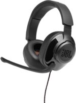JBL Quantum 200 over-ear gaming headphonesh3The JBL Quantum range delivers a sound experience that transforms each headset into a crown for the everyday champion. TheQuantum 200 comes with the JBL Quantum Sound signature which gives player the advantage of easily pinpointing incoming fire, hearing enemies creeping up from behind as well as feeling the roar of explosive action, all to enhance your gaming experience. Built by our team of acoustic engineers and tested extensively with gamers around the world to develop a predictive algorithm so that every game is more immersive to give you a competitive edge. The JBL Quantum 200 delivers an accurate soundscape so you can amplify all your epic gaming moments.Product detailsstrongWired over ear headsetJBL Quantum Sound signature3.5 mm and PC splitter connectionBoom microphoneFlip-up or detachable mic optionscompatible with following devices: PC, Playstation 4, Xbox One, Nintendo Switch, Mac, mobile and VR3.5 mm jack connection for: PC, Playstation 4, Xbox One, Nintendo Switch, Mac, mobile and VRWindows Sonic Spacial Sound supported on the following platforms: Windows and Xbox One