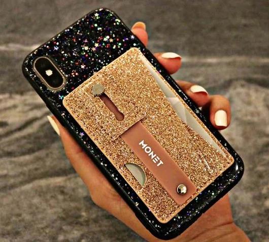 محفظة للهاتف من مونيت – ذهبي وردي لامع
