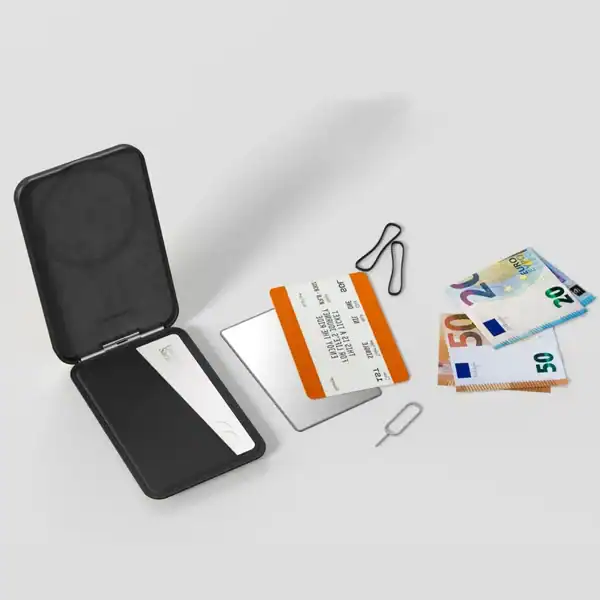 Keep your essentials within reach with the Glamour Link Magnetic Wallet. Designed with a discreet card slot, it securely holds your credit cards, ID, or travel tickets streamlining your everyday carry. Ultra-thin yet durable, it keeps your pockets light and your valuables protected. Minimal bulk, maximum function.