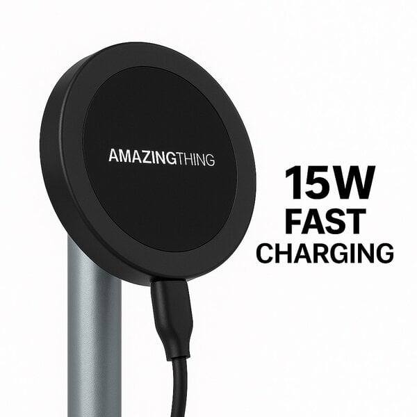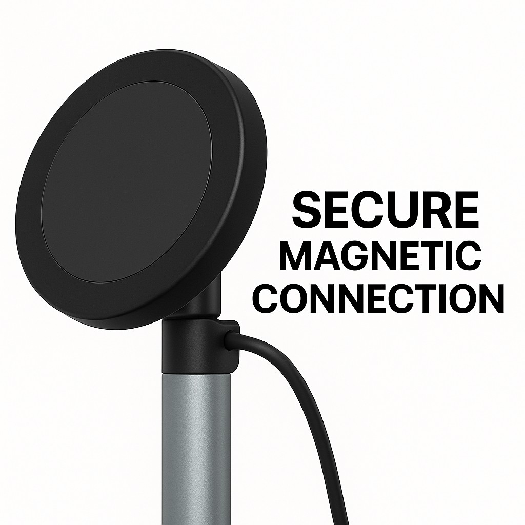 the charger delivers quick power while firmly holding your phone in place using strong magnets. This allows you to watch videos, take calls, or scroll comfortably without touching or adjusting your phone.