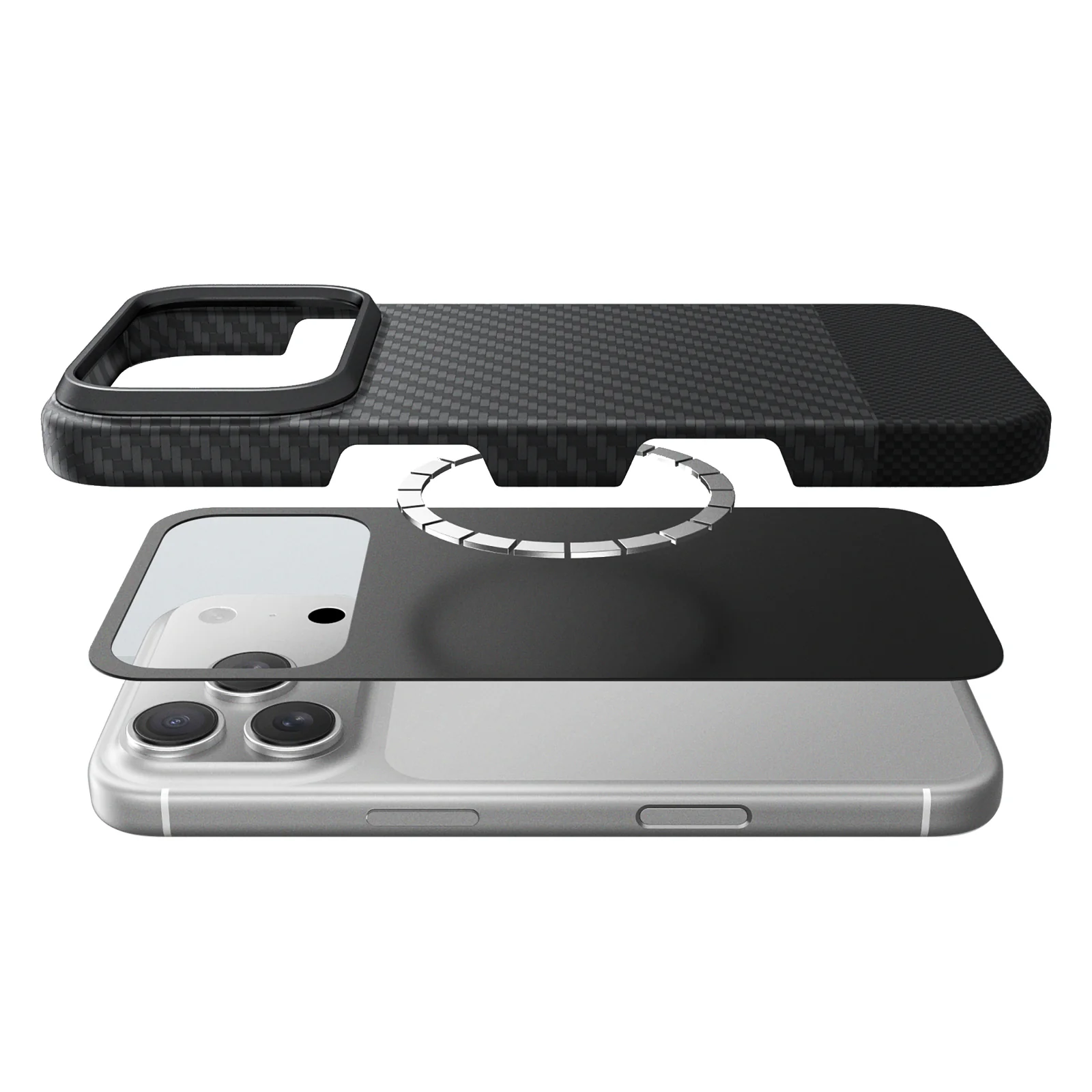 Built for durability and everyday utility, Titan Max features a raised camera bezel for lens protection. Its 1500D aramid fiber back adds slim, lightweight strength with resistance to scratches and wear. Enhanced MagSafe alignment provides 20% stronger magnetic hold for stable, efficient charging.The raised bezel surrounding the camera lens provides extended protection against scratches, surface contact, and minor impacts. It helps preserve photo clarity while maintaining the phone’s slim profile and clean, streamlined design.Made with tightly woven aramid fiber, the back panel provides excellent protection while remaining lightweight and slim. It resists daily scratches, fingerprints, and deformation, maintaining durability and clean aesthetics over time.This case features an improved magnetic ring that increases magnetic strength by 20%compared to the previous version. It enables faster MagSafe alignment, stronger attachment, and consistent performance with compatible accessories and chargers.