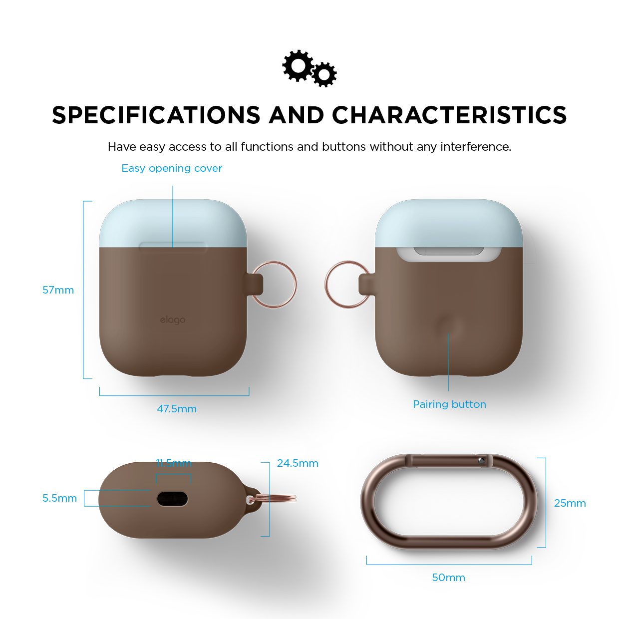 The Airpods hang case was specifically designed for Airpods, so it does not get in the way of charging capabilities. Hang case adds protection you can feel and great grip. (Compatibility not guaranteed with charging cable except for Apple genuine lightning cable and Elago Lightning cable.) PROTECTION: Made from shock-resistant silicone material to protect your AirPods from scratches and external impacts. NON-TOXIC: Case is made from high-grade silicone to ensure the product is non-toxic. CONVENIENT PORTABILITY WITH CARABINER : Durable carabiner is included with case to provide the ability to safely attach your AirPods case to carrying bags, travel carriers, pants, etc.