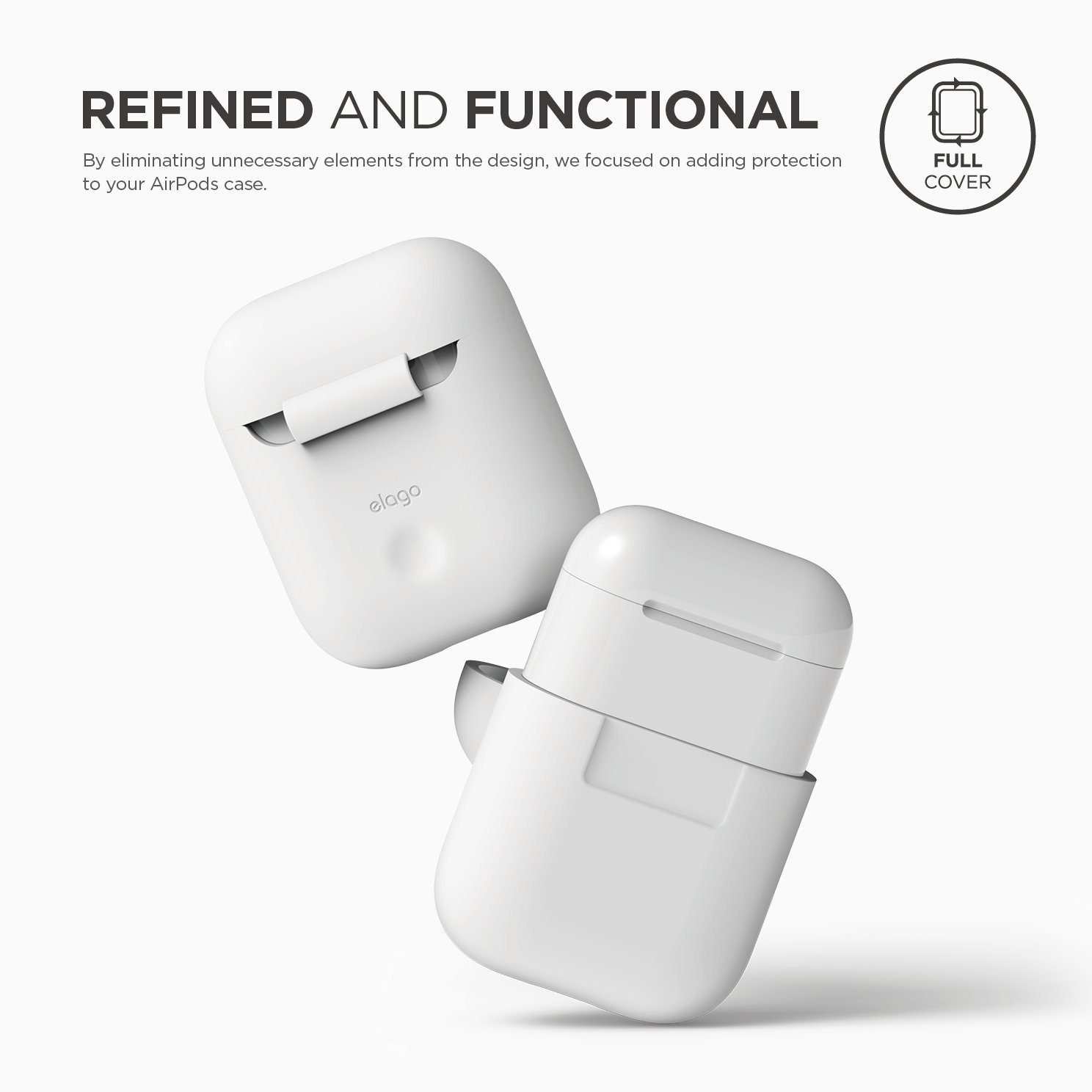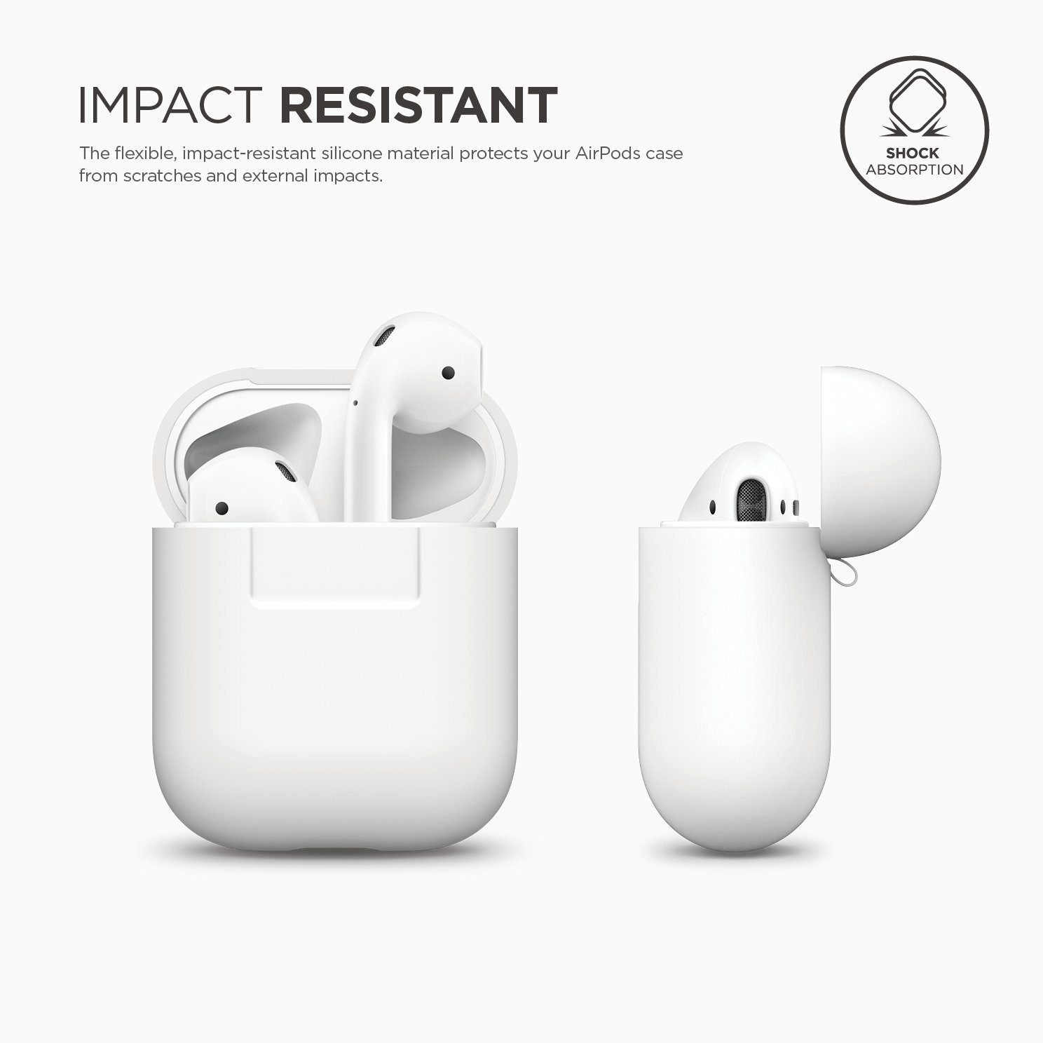 The case is made of flexible, impact-resistant silicone material. This added layer of protection will prevent scratches and buffs up protection from external impacts; Bluetooth button is also covered. DETAILED DESIGN: Put your AirPods case in its new home and you will notice that the case fits perfectly! You will have access to all functions of the AirPods case without any interference from the silicone case. SPLASH OF COLOR : Available in Black, Dark Grey, Pink, White, Lavender, Peach, Red, and Nightglow Blue variations are available to give your case that needed splash of color!