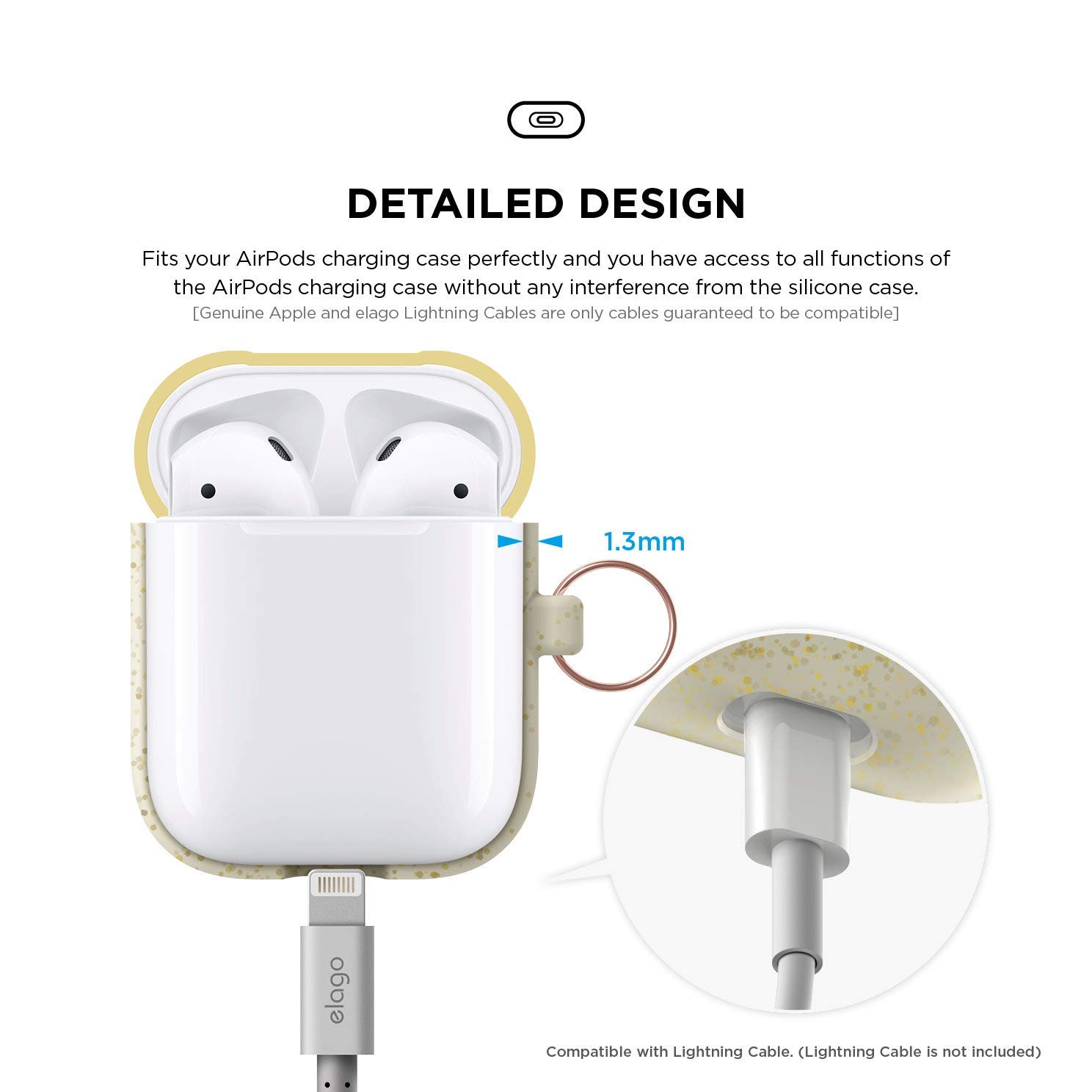 The Airpods hang case was specifically designed for Airpods, so it does not get in the way of charging capabilities. Hang case adds protection you can feel and great grip. (Compatibility not guaranteed with charging cable except for Apple genuine lightning cable and Elago Lightning cable.: Made from shock-resistant silicone material to protect your AirPods from scratches and external impacts. NON-TOXIC: Case is made from high-grade silicone to ensure the product is non-toxic. CONVENIENT PORTABILITY WITH CARABINER : Durable carabiner is included with case to provide the ability to safely attach your AirPods case to carrying bags, travel carriers, pants, etc.