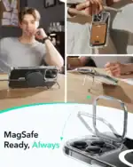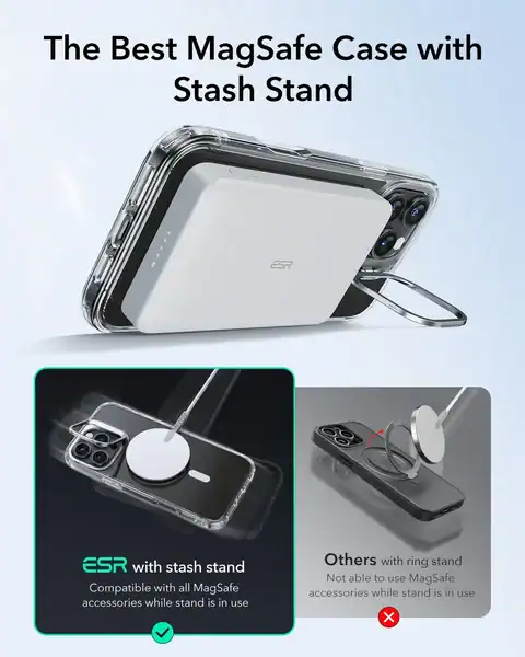 Fully compatible with MagSafe to enable fast, easy place-and-go wireless charging.Fully adjustable Stash Stand ensures stable viewing and 100% MagSafe access. Reinforced with shock-absorbing Air Guard corners to provide powerful protection against drops and bumps