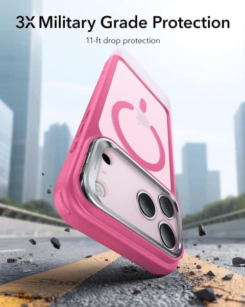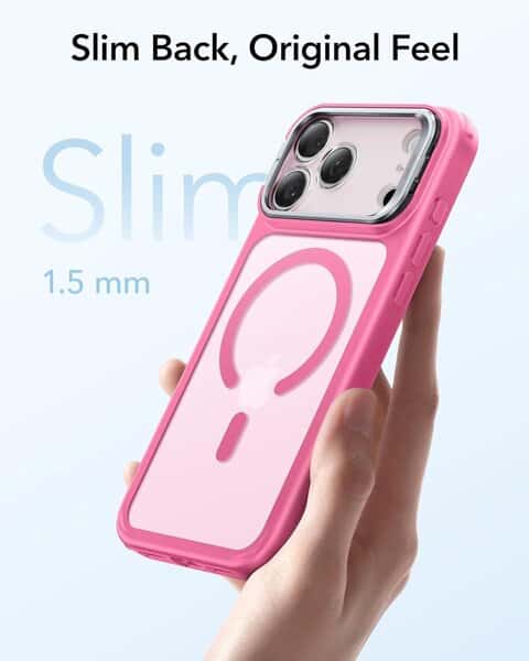 ESR iPhone 17 Pro Max HaloLock Classic Hybrid Case with Stash Stand (Frosted Pink)