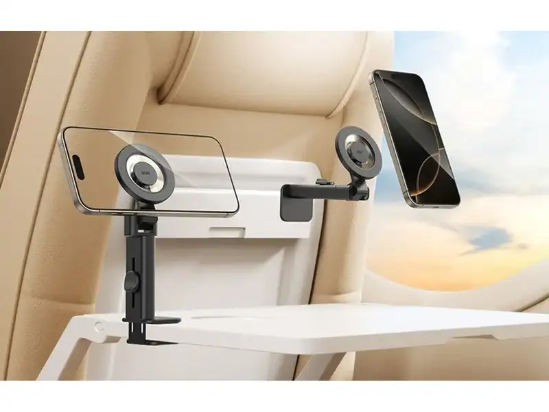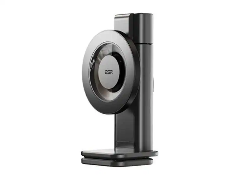 The ESR SkyGrip phone holder offers a compact design with an ultra-strong 2000g magnetic mount and 4000g clamping lock. Fully adjustable for portrait or landscape orientations, it ensures stability and convenience for a variety of surfaces and is compatible with MagSafe and metal-ring cases.