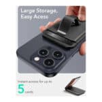 The card holder can hold up to 5 cards, and the convenient recess makes it easy to remove your card quickly when you need it. The card holder clicks securely onto the back of your phone, or onto a MagSafe phone case, thanks to the built-in MagSafe magnet.