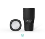 A car cup holder that works to cool and heat liquids by placing a cup or flask in the top slot.