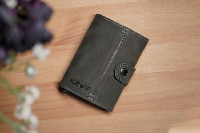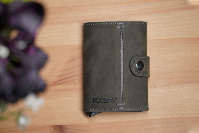 KAVY Credit Card Holder Leather Slim Wallet- Grey