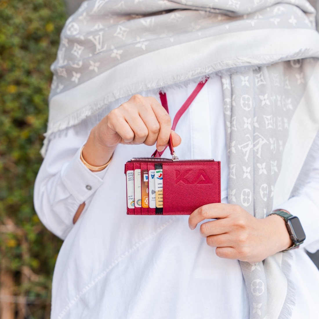 This Card Holder, equipped with a Strap is delivered in a genuine leather with quilting. It features five card slots on the front and a zip closed pocket for money and bills, and a detachable neck strap for easy portability.