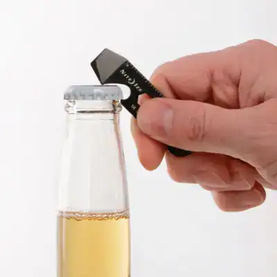 Features the following tools: Box Cutter, Bottle Opener, Wrench (1/4″, 5/16″, and 3/8″), Ruler (inches and centimeters), and Flat Head Screw Driver