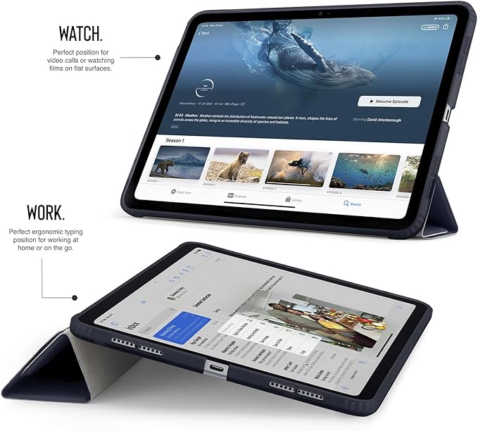 5-IN-1 STAND POSITIONS 2x Stand positions for typing and viewing; 2x additional wide-base positions and 1x further portrait position