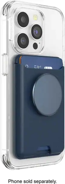 PopSockets – MagSafe Softgoods PopWallet+ Cell Phone Wallet & Grip, with Adapter Ring – Blue