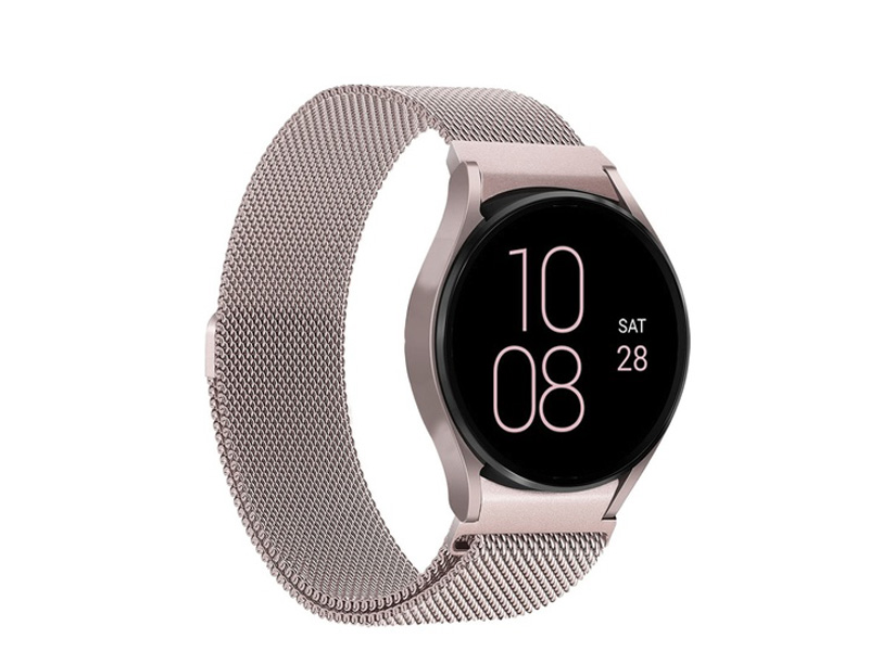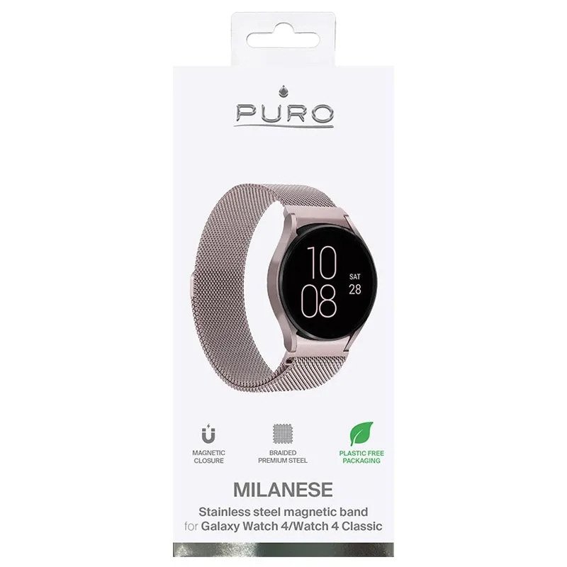 Puro Stainless Steel Milanese Rose Band for Samsung Galaxy Watch 4 and Watch 4 Classic. The one-size band features a stainless steel mesh with infinitely adjustable magnetic closure, and thanks to its elegant design and distinctive finish it is the perfect solution to give an Italian touch to the Samsung smartwatch.