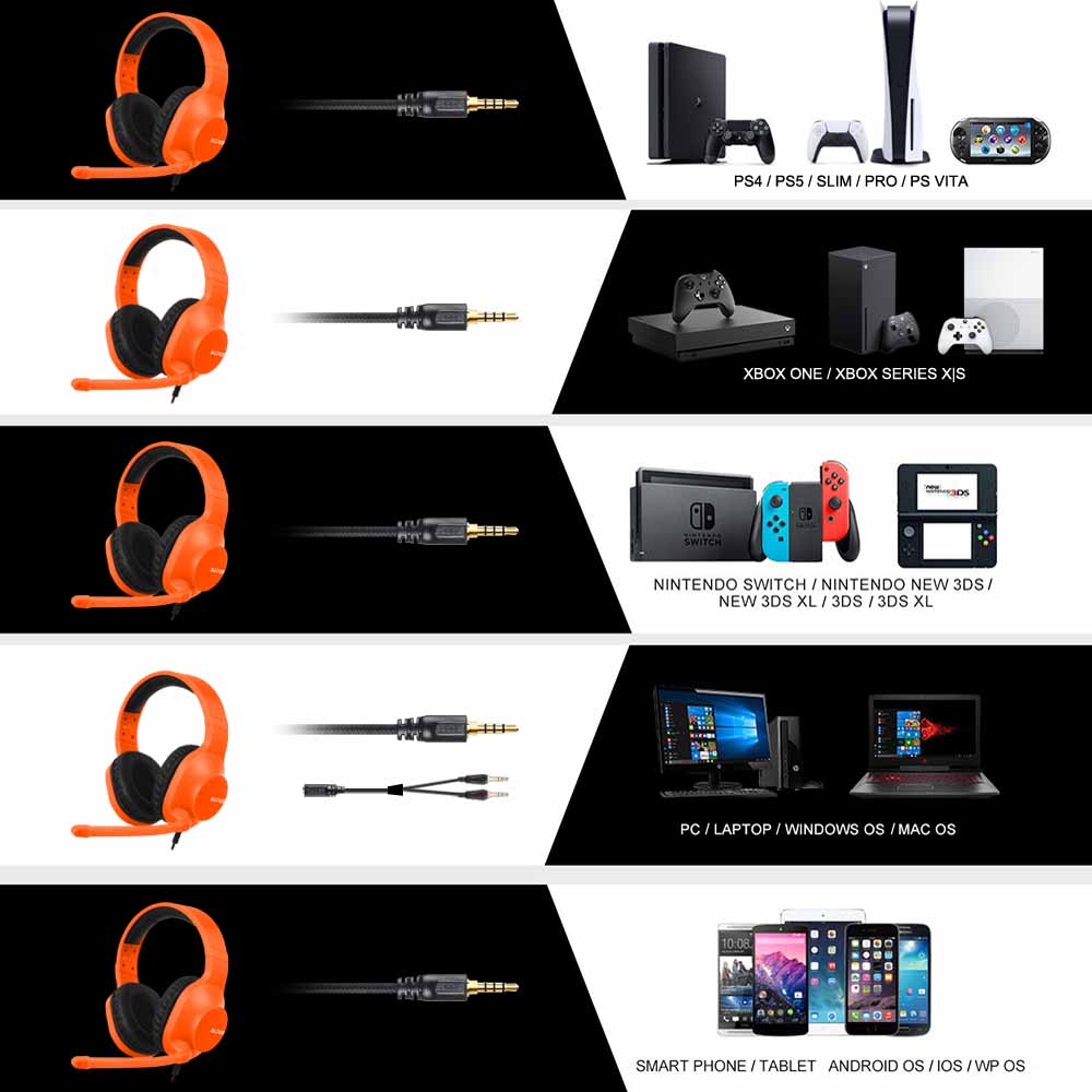 The SADES Spirits Gaming Headset is a universal platform compatible headset equipped with 50mm speakers and delivers pristine stereo sound. The convenient controls on the left ear cup make it easy and convenient to control. It is a lightweight headset with comfortable pads on headband and ear cups. The SADES Spirits headset is also equipped with an adjustable headband as well as soft skin-friendly leather ear muffs making it super comfortable to wear for extended gaming sessions..Excellent stereo sound thanks to 50mm Loudhailer drivers Compatible with PC, PS4, PS4 Pro, PS5, Xbox One, Xbox Series X|S, Mobile, VR, Switch Omni-directional microphone provides crystal clear voice transmission Soft, cushioned ear pads are easy to clean and comfortable to wear 3.5mm dual jack plug allows for many applications Easy access controls on left ear cup