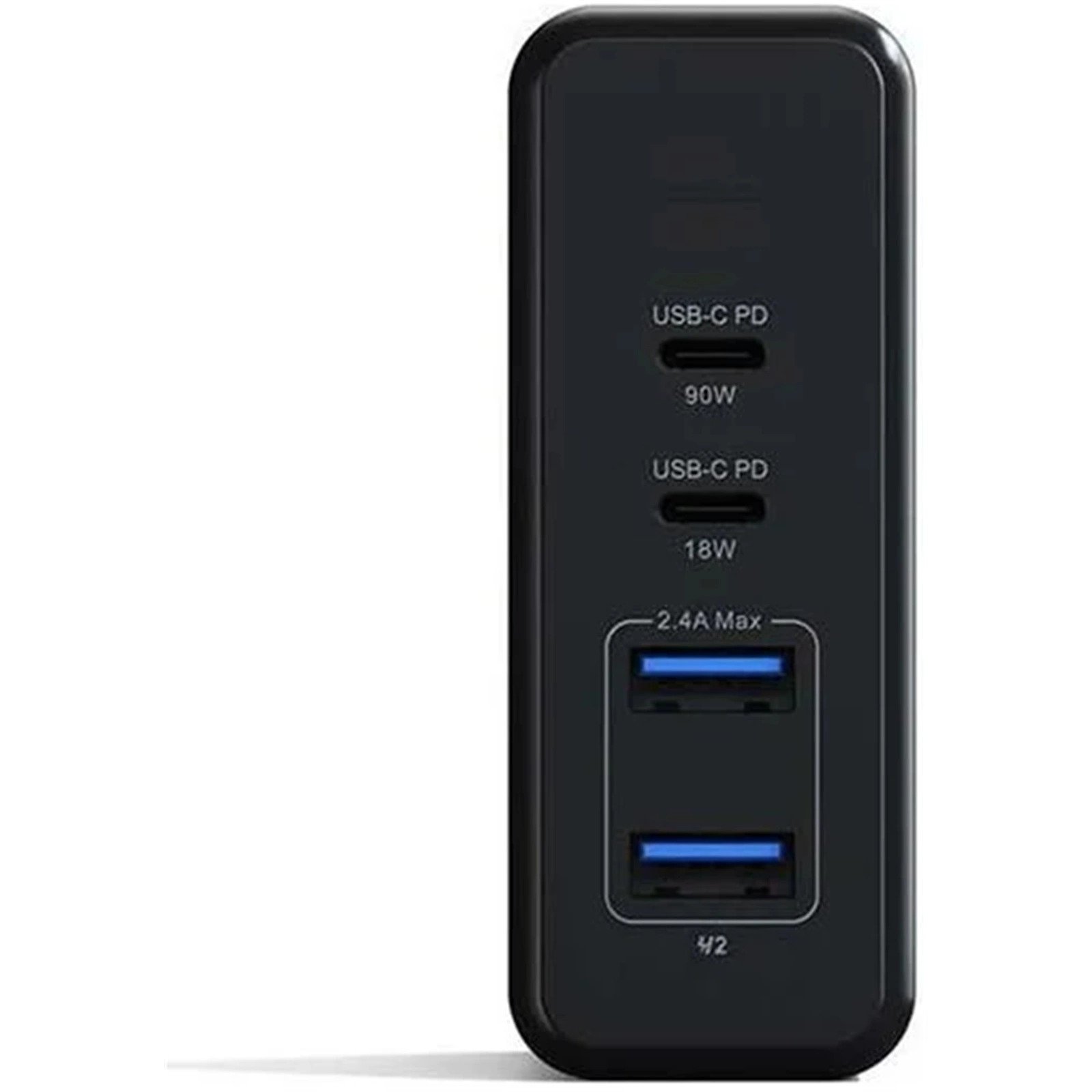 Features upgraded USB-C PD ports, 90W and 18W, to charge high-powered Type-C laptops and tablets without downgrading power when connecting two devices. The result? Faster and more powerful charging than before.Housed in durable, heat-resistant materials, the Charger complies with CE, ETL, USBIF and FCC standards to ensure a safe, worry-free charge. Includes two USB-C PD (90W, 18W) and two USB-A (total: 12W) ports to charge up to four USB devices at once. Charging cables not included.Its ultra-sleek design complements your modern accessories and consolidates multiple adapters – ideal for working in the office or traveling on-the-go.