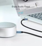 Enhance your audio options with this versatile Ugreen 3.5mm male-to-male stereo audio cable. From iPhones to iPads, the cable quickly connects your smartphone, MP3 player, tablet, or other portable audio device with a 3.5mm audio jack (e.g. headphone jack) to the AUX-in port of your car stereo, portable speaker, or other compatible audio-output device.Playlists, podcasts, and compelling audio books help make any road trip more memorable. Listen to content from your portable device over your car’s stereo system using the Ugreen 3.5mm stereo audio cable. The handy cable also makes dinner parties and backyard barbecues even better with music from your MP3 player or other portable device played over your home entertainment system or portable speakers. The cable transmits audio in stereo format for a sublime surround-sound experience.With a 10000+ bend lifespan several times longer than original audio cables, premium metal housing and durable, flexible cotton yarn internally, high quality TPE material and nylon braid externally, this cable really is made to last. To use, simply plug each end of the cable into the respective port on a compatible device, and it’s ready to go. The audio cable works with any device equipped with a standard 3.5mm audio jack or AUX-in port. Your portable device can even be charged while in use, though a separate cable would be required.