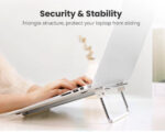 Compact, also secure and stable. It lifts your laptop to a comfortable height firmly with a sturdy triangle structure. Besides, the anti-slip silicone pads keep your laptop in place and prevent it from scuffs and scratches. For UGREEN desk laptop, its maximum load-bearing weight up to 20KG.