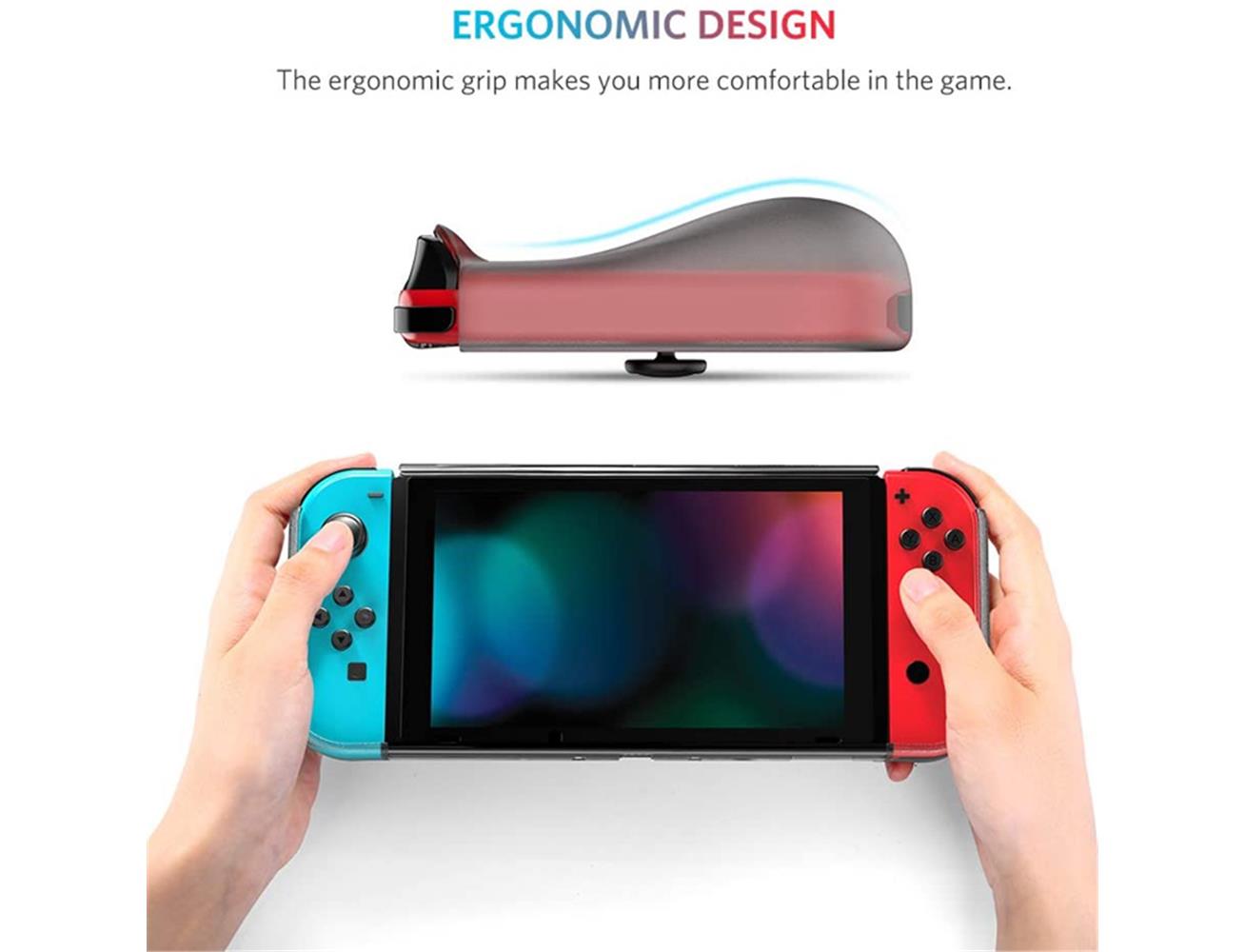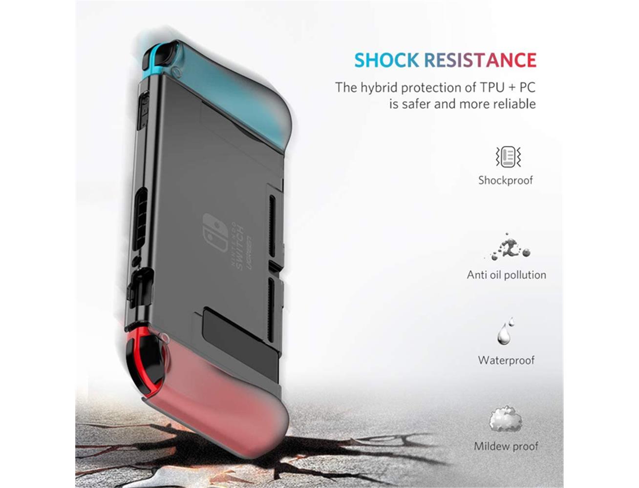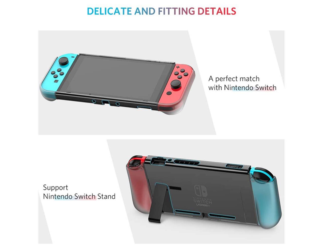 Dockable Case Designed for Nintendo Switch, UGREEN protective case cover enables you to remove and fit in the dock perfectly without taking off the case. It is easily dockable, only needs a gentle push to fully dock. 【Easy to Put on and Take off】With unique split design for the joy cons, this case protector allows you to take out joy con controllers without removing the whole case. Easy to put on and take off whenever you want to dock the switch, especially for playing handheld mode. 【Shock Resistance】Hybrid protection of TPU and PC material make this protective cover more reliable and safer. Protect your nintendo switch from everyday bumps, scratches, dust and fingerprints. 【Perfect Match】With precise cutting and appropriate space saved, this protector case covers your nintendo console excellently. It supports Nintendo switch stand on the back and there is no block for its charging port. 【Easy to Handle】Ergonomic design on this case gives you more comfortable experience and easy to grip, especially when holding it in hand and playing games. Perfect balance of flexibility and rigidity make the case protective and also comfortable.