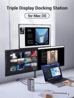 Incredible Expansion: 12 ports allow you to connect most devices through a single USB-C docking station: 2x HDMI Port, 1x DP, 1x PD 3.0 100w, 1x USB A 3.2 , 1x USB C 3.2, 2x USB 3.0, 1x Ethernet port, 1x SD/Micro SD card slots, and 1x 3.5mm AUX port. Expand the capabilities of your home or office workspace. Our docking station exceeds the needs of most power users on both Windows and macOS. (Note: video output and network port functions require you to install the driver to use.) Triple Display Dock: DisplayLink Technology – MacBook docking station compatible with macOS and Windows laptops, supports multiple monitor expansion or mirroring mode. The HDMI 2 port supports up to 8K@30Hz max with Windows and up to 4K@60Hz with macOS. HDMI port 1 and display port both support resolutions of up to 4K@60Hz with both operating systems and can be used for programming, stock trading, design work, etc. (supports triple displays/extended mode in macOS and Windows) 8K Crystal-Clear Streaming: The HDMI2 port supports up to 8K@30Hz with Windows and up to 4K@60Hz with macOS. Connect monitors simultaneously and enjoy crystal-clear streaming or mirroring across 3 displays. (Note: computer must support 8k video output: see the compatibility list for details). High Transfer Speeds: MacBook dock station has 1x USB-A 3.2 2nd Gen port and 1x USB-C 3.2 port with Flash Transmission speed up to 10Gbps, and 2x USB 3.0 ports to meet your daily needs. The laptop docking station with PD3.0 ports provides up to 100W of power to your laptop. Eliminate “Low Battery Anxiety” from your life! Compatibility Information: UGREEN MacBook docking station is compatible with Windows OS and macOS systems, including M1 M2 Macbook, and lets you expand your screens to three different displays. This docking station has the highest display resolution on the market. (Note: Does not support Linux. DisplayLink software must be installed to ensure media display functionality and correct use of network port.) Package List: 1x USB-C to USB-C cable, 1x manual, 1x installation device. Not included: power adapter, HDMI cable
