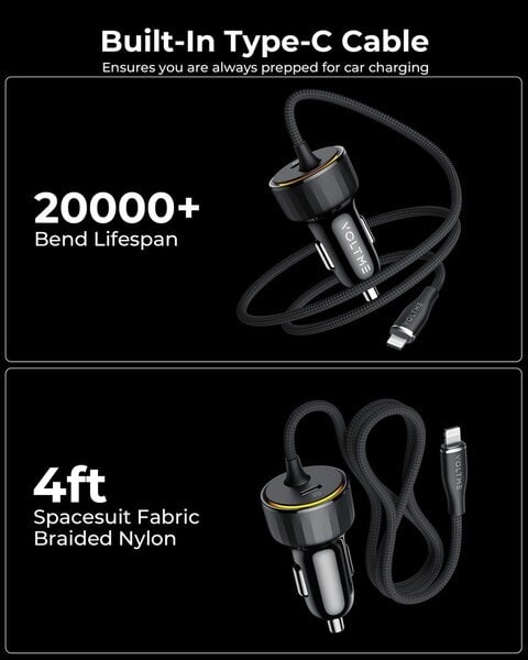 Dual Charging with USB-C & Lightning: Charge two devices at once! This car charger offers a built-in Lightning cable and a USB-C port so you can power up your iPhone and another USB-C device simultaneously, keeping everything ready on the go.