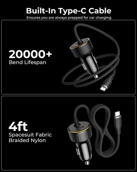 Built-in 1.2m Magnetic Self-Organizing USB-C Cable- Includes a premium 1.2-meter (4ft) magnetic USB-C to USB-C cable designed to snap into a neat coil when not in use. The built-in self-organizing magnetic structure keeps your cable tangle-free, organized, and easily accessible without messy wires in your car.