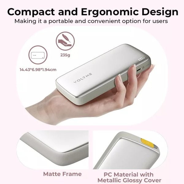 VOLTME Hypercore 10K Rollz 10000mAh Power Bank, 30W Fast PD -Gray