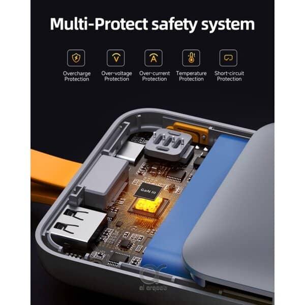 Built-in USB-C cable + 2 additional ports for 3-device charging.