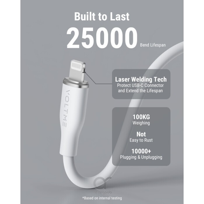 The charging speed of this USB-C to lightning cables is 3X faster than the USB C to Lightning cable. Voltme C to Lightning data cable can withstand 15,000+ bend tests and 10,000+ plug and pull tests.