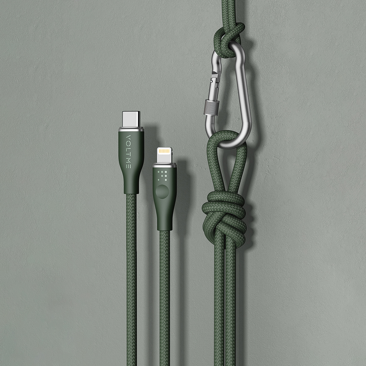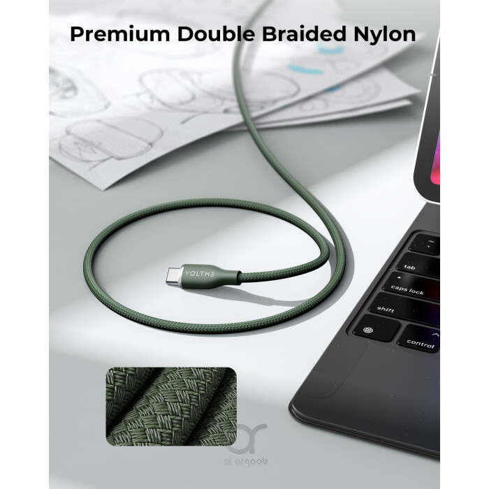 Voltme Powerlink Rugg Double Nylon Cable Type C to Lightning 3A / 1.2M Zinc-Alloy Connector Dark Green