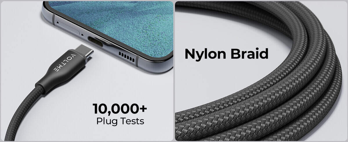 Nylon-Braided: Nylon braided USB C to USB C cable A hard-wearing double nylon exterior combines with a 20,000-bend lifespan to create a cable that’s durable both inside and out. A robust fast charging and data syncing USB C PD cable for daily use.