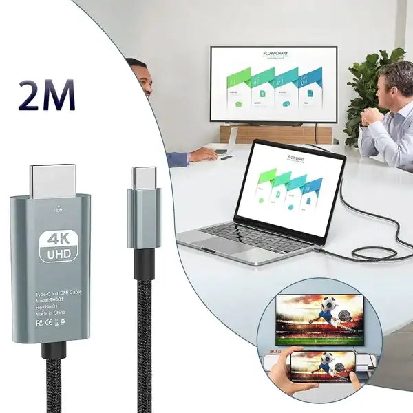 Designed to display content from Type-C devices to large displays or projectors via HDMI, in high definition and without delay, with full support for multi-channel video and audio.It transmits images at a resolution of up to (3840 x 2160) 4K, with a refresh rate of 30 Hz, with automatic compatibility with lower resolutions, making it suitable for various types of screens.