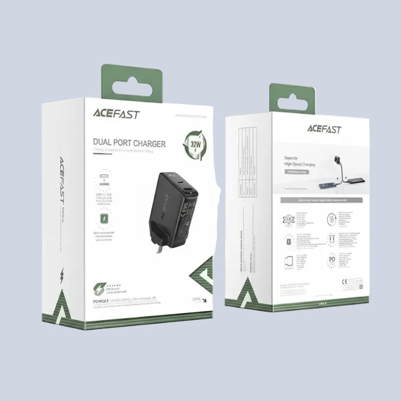 Acefast- Safer, V0 fire protection. Certification: UKCA. When the dual ports output at the same time, the C port still supports PD fast charging. It is mainly suitable for charging an Apple mobile phone + Apple headset/Apple watch at the same time, or charging a Samsung mobile phone + Samsung headset/Samsung watch at the same time.