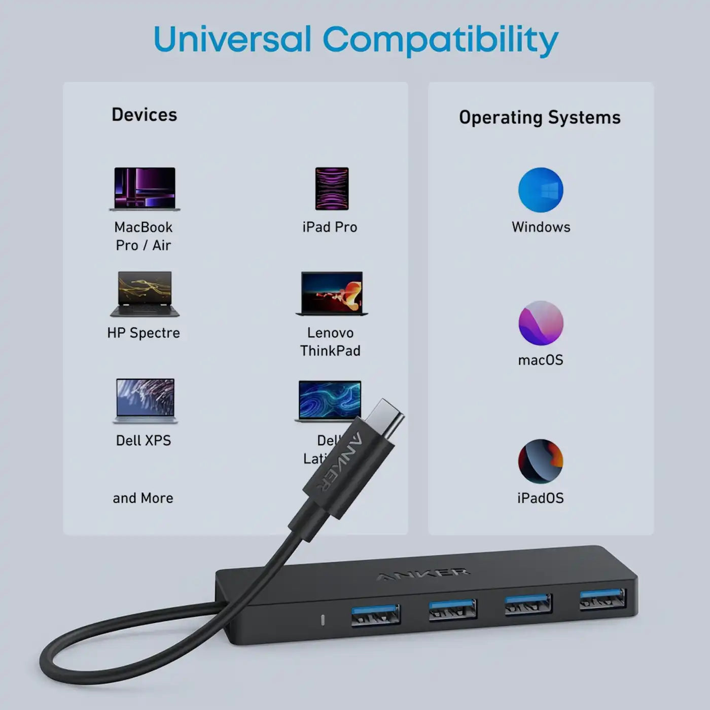 Streamline your workflow with the Anker USB-C Data Hub, engineered for professionals and creators who demand speed and reliability. This compact 4-in-1 hub delivers lightning-fast 5Gbps data transfer speeds, allowing you to sync large files, photos, and videos in seconds. Simply plug it in no drivers or software required and instantly expand your device's connectivity.