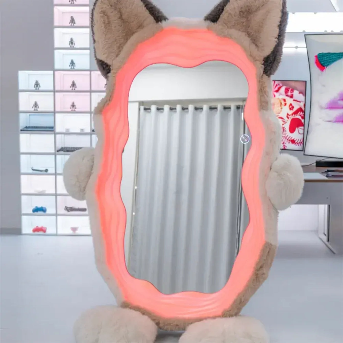The most distinguishing feature of this product is the cat ear silhouette atop the mirror — usually formed by a frame that extends into two upright points resembling cat ears. This playful shape gives the mirror a bold visual personality, making it a standout element in décor rather than just a tool.