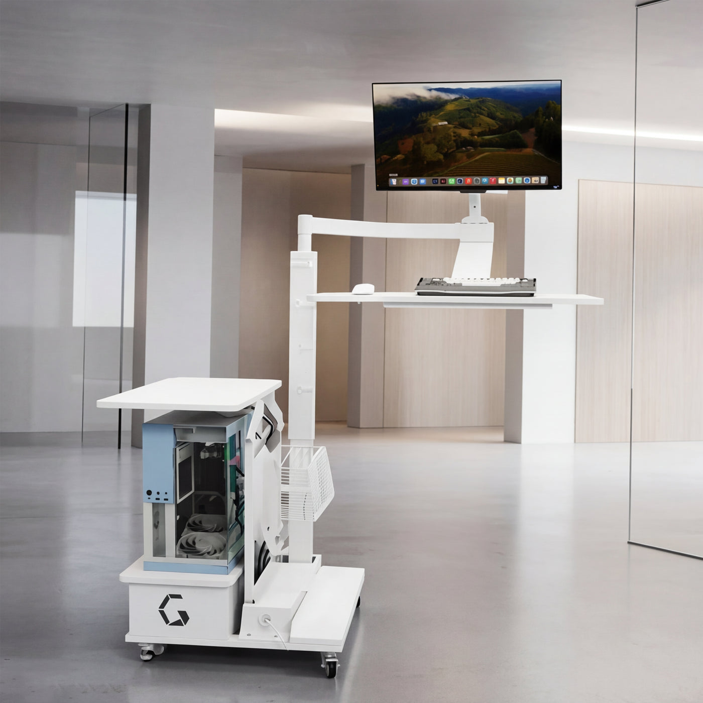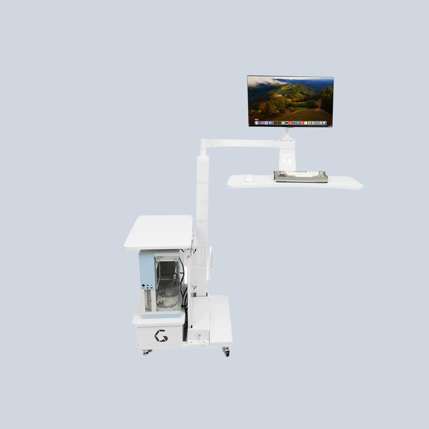 Integrated monitor arm supports screens up to 32"