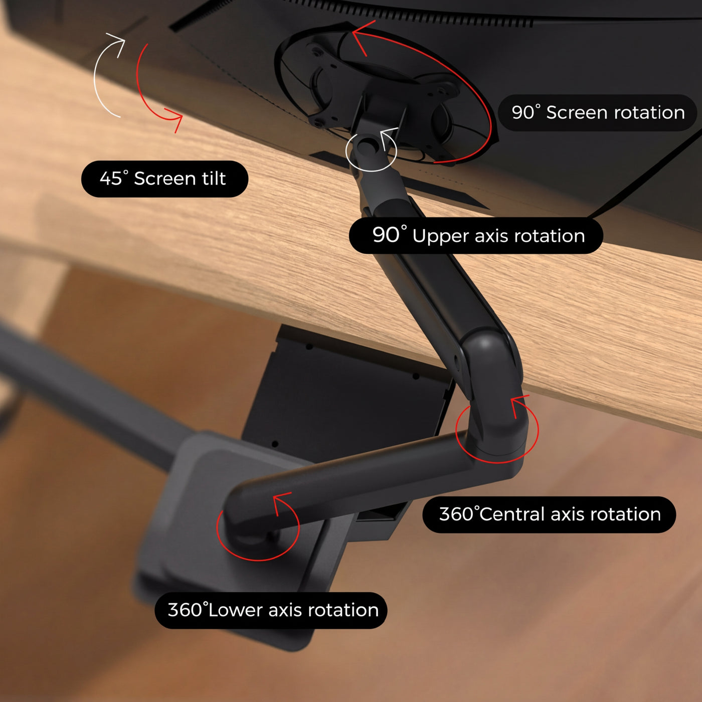 Monitor arm allows full screen rotation